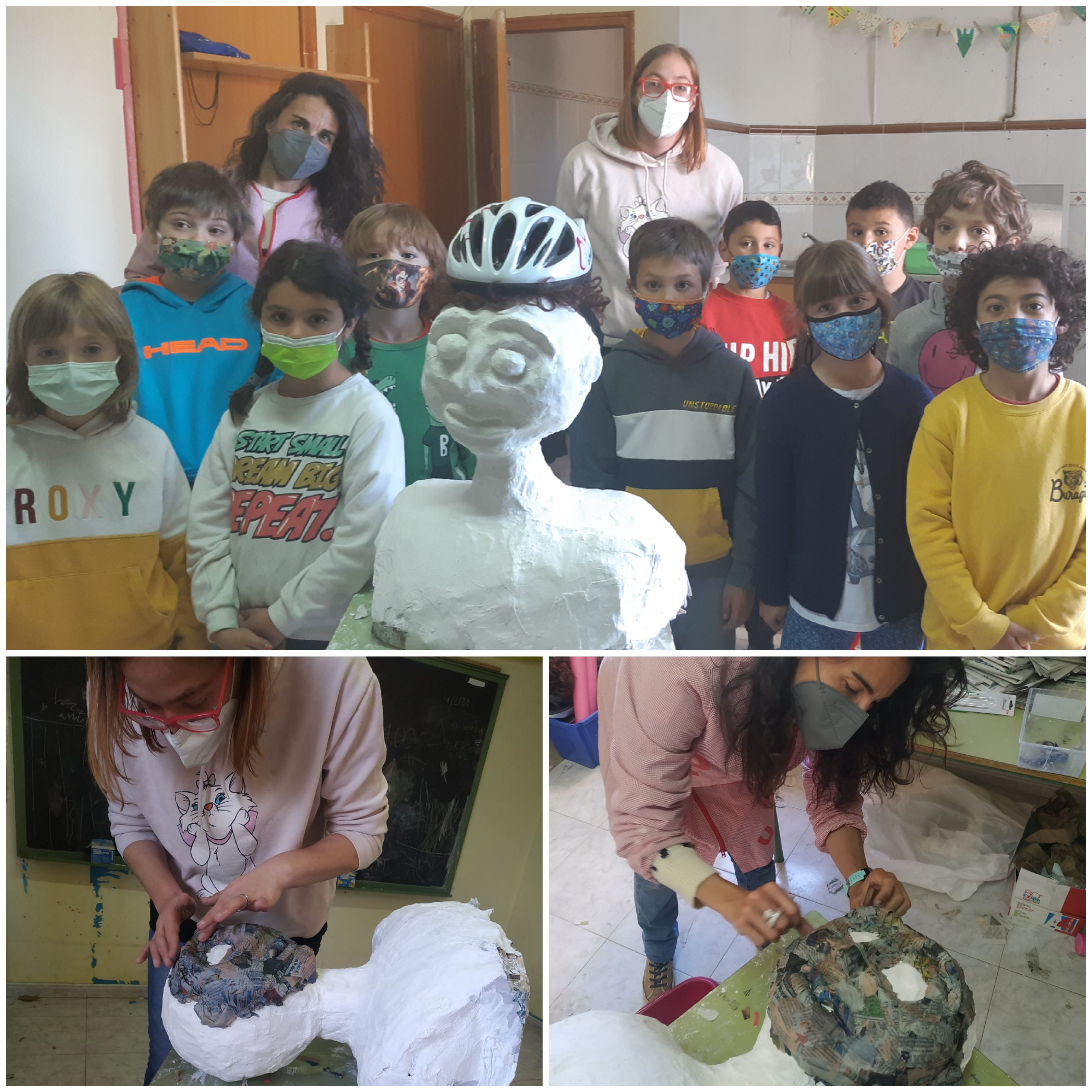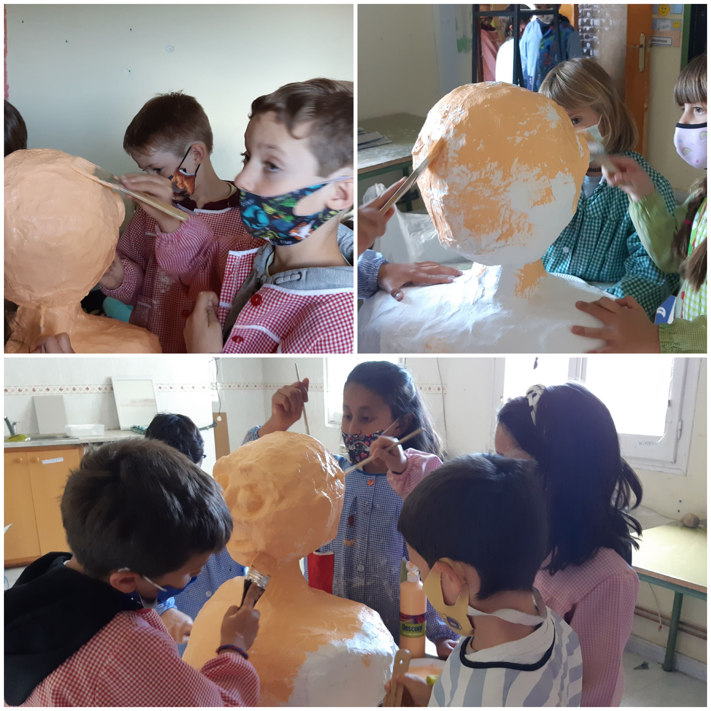 Un cop assecat el vam pintar amb pintura acrílica, i amb els consells de la Cristina, la mare de l’Abril, vam dibuixar els ulls, les galtes i els llavis.