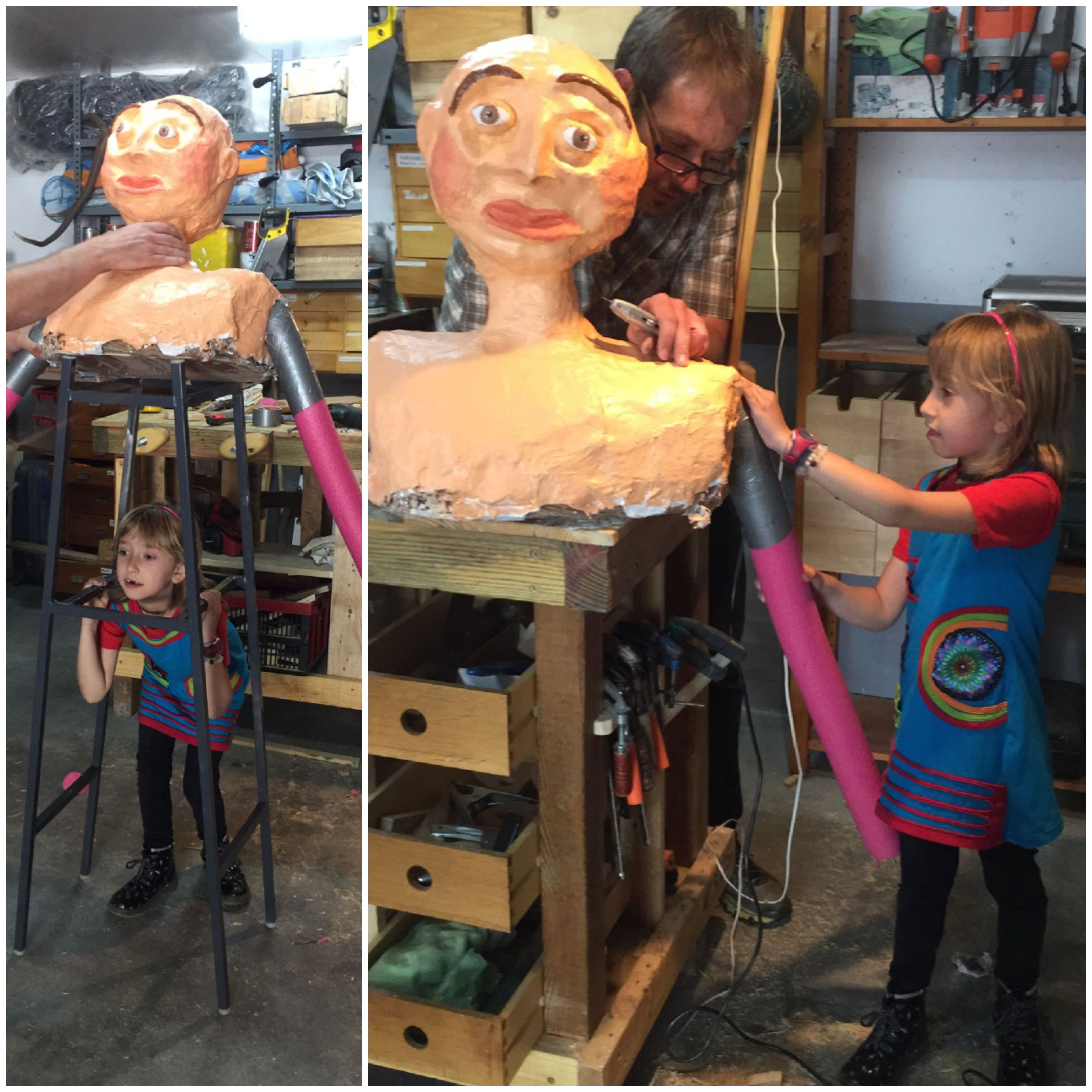 Ara teniem un repte molt important: consolidar amb una sola peça el cap, la cadireta i els braços. Amb les indicacions del Miquel del Taller d’Art de Puigcerdà i el Dani, el pare de l’Èlia ho vam aconseguir