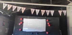 Tota la comunitat educativa, alumnes, mestres i famílies, ens vam reunir al teatre per iniciar la festa que amb molta il·lusió havíem preparat. L’escenari estava decorat amb objectes de la platja per fer una bona entrada a l’estiu.