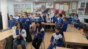 Aquest segon trimestre hem començat un projecte que implica la participació dels alumnes de sisè en la creació d’acompanyaments rítmics amb instruments de petita percussió Orff, com: panderetes, caixes xineses, claus, cascavells, güiro, triangles, cròtals, panderos i la melodia a càrrec de les flautes.