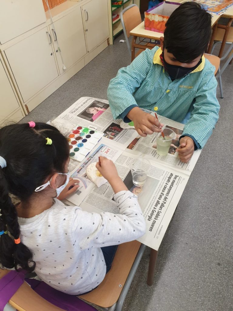 L’alumnat de cicle inicial hem realitzat a plàstica uns portaespelmes maquíssims amb pasta de sal. Cadascú hem fet la nostra pròpia pasta amb 1 mesura de farina, 1/2 de sal i 1/2 d’aigua, l’hem barrejat molt bé fins a formar una massa modelable i després donat forma.