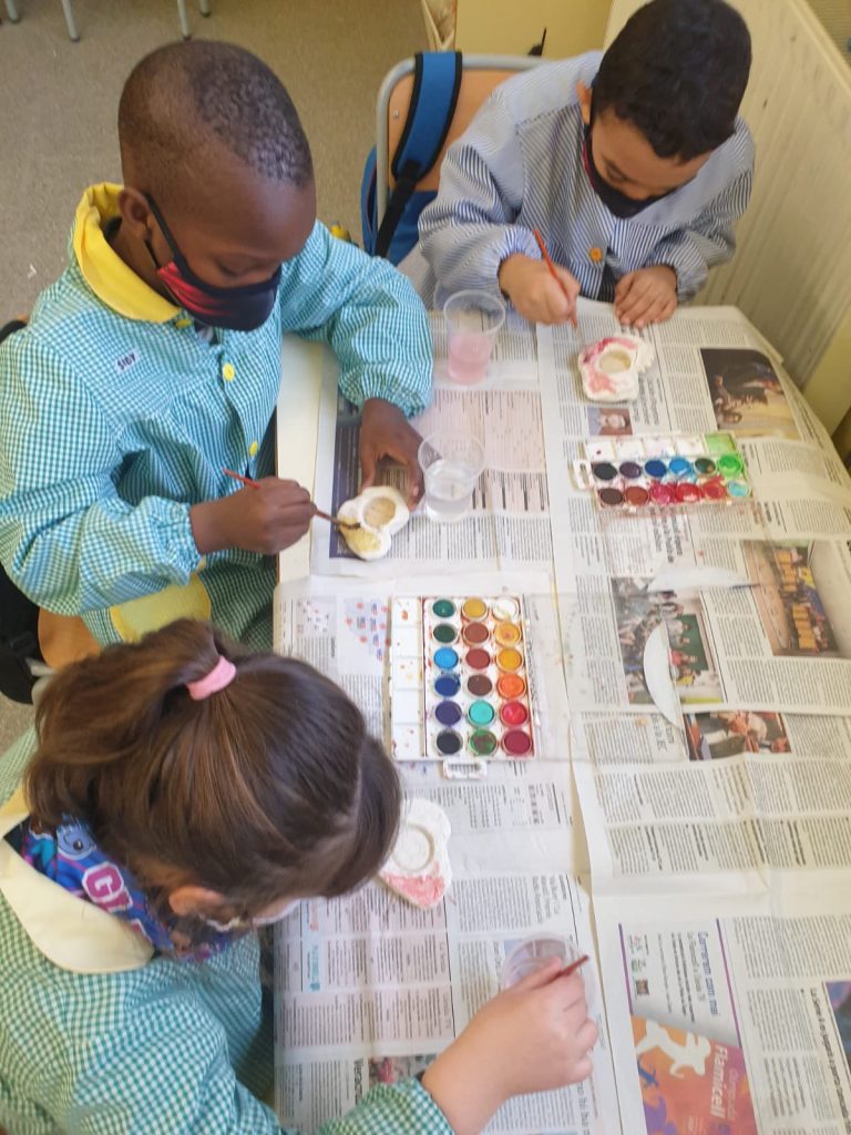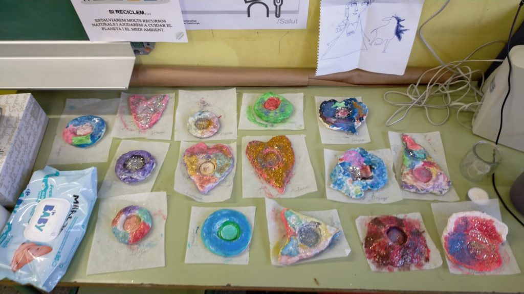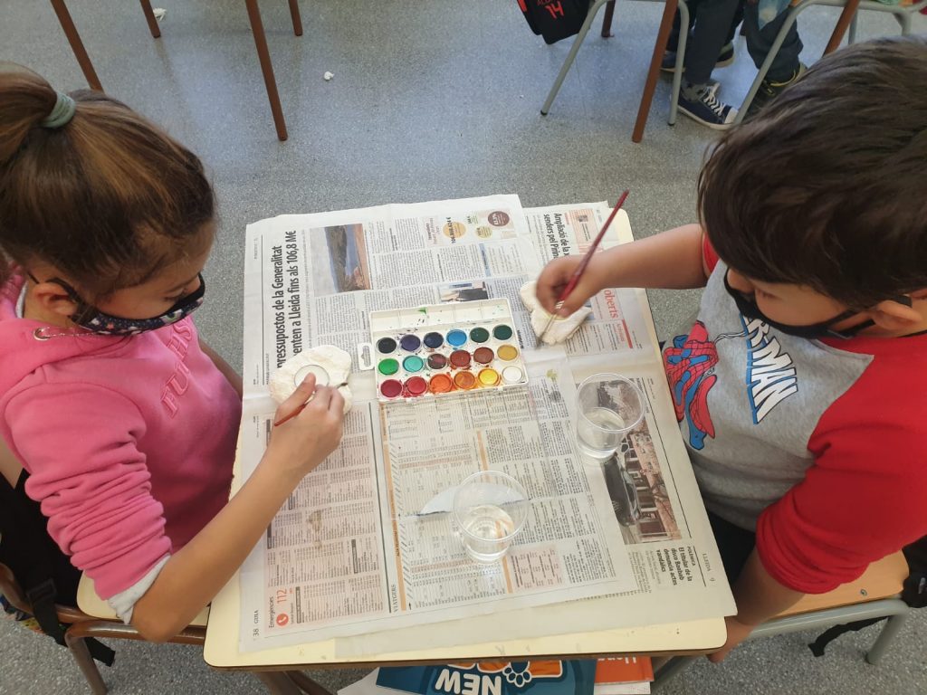L’alumnat de cicle inicial hem realitzat a plàstica uns portaespelmes maquíssims amb pasta de sal. Cadascú hem fet la nostra pròpia pasta amb 1 mesura de farina, 1/2 de sal i 1/2 d’aigua, l’hem barrejat molt bé fins a formar una massa modelable i després donat forma.