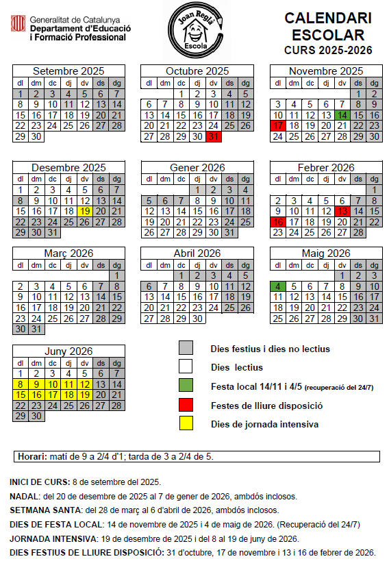DATES D’ACTIVITATS DE TOTS ELS CURSOS