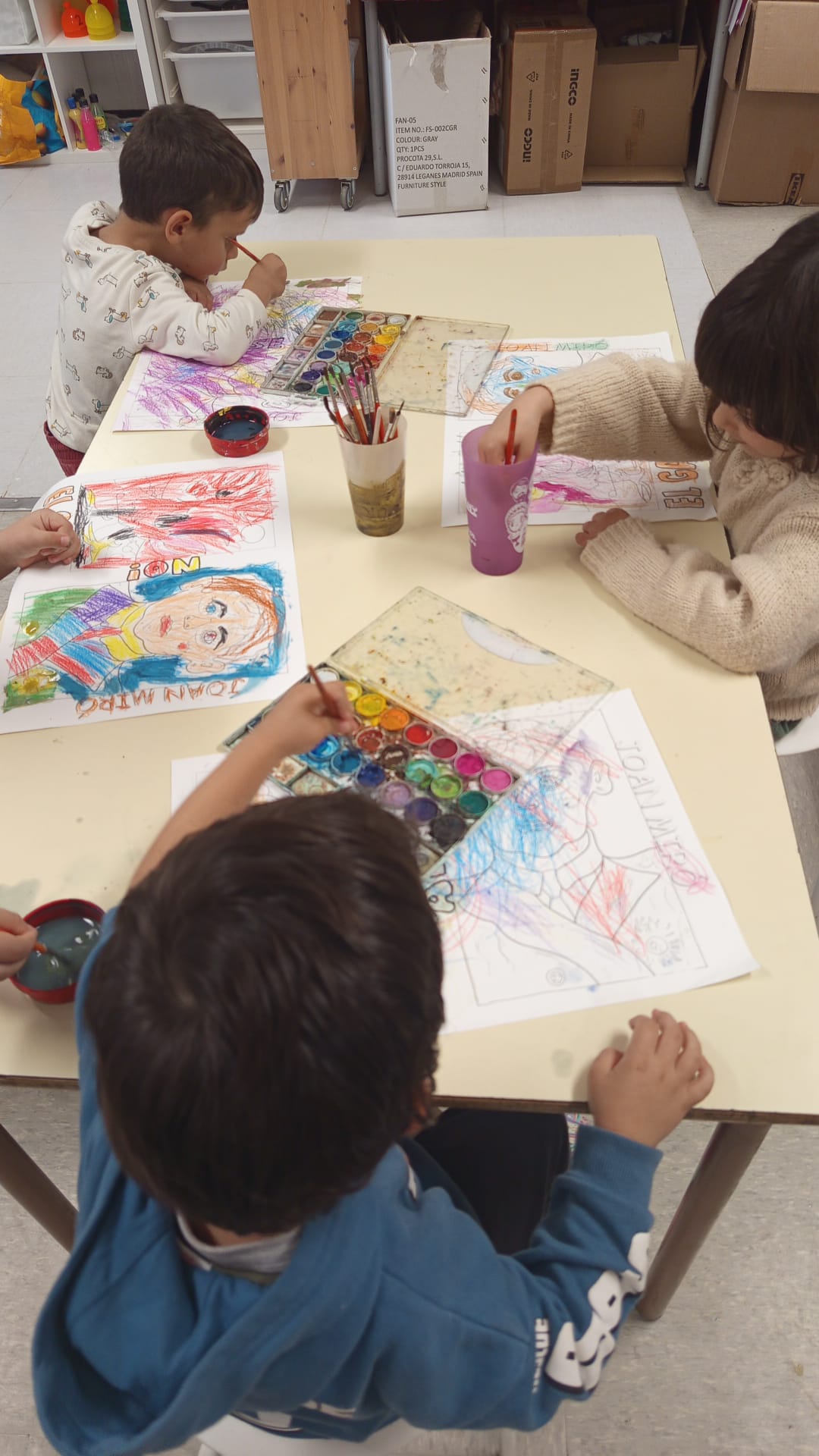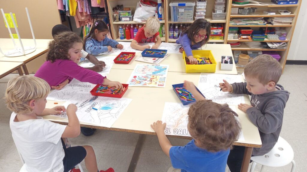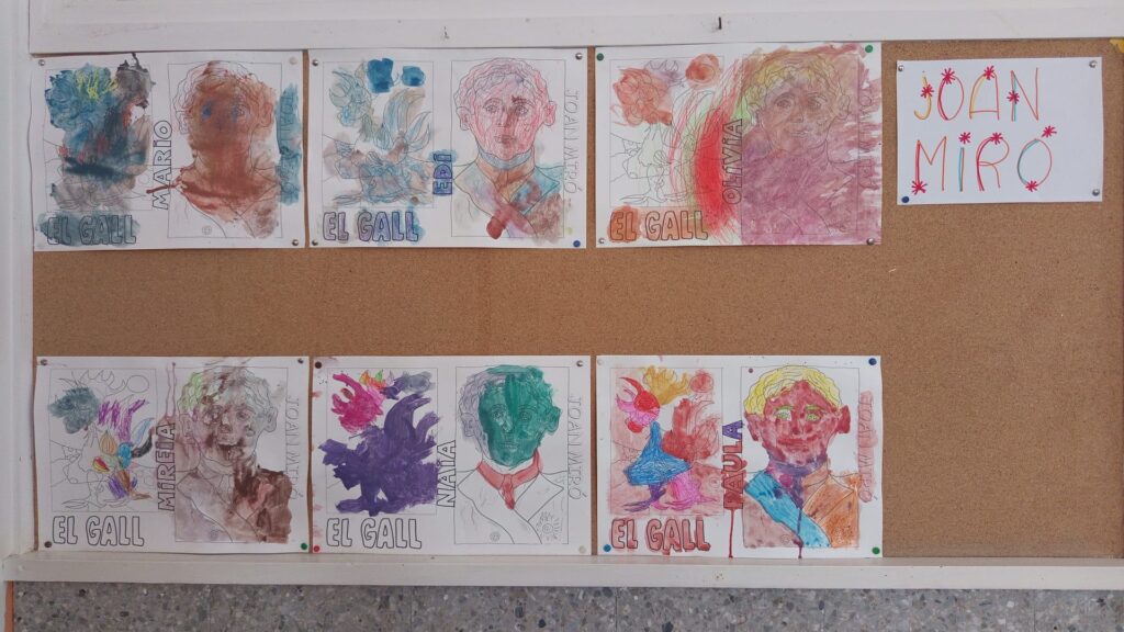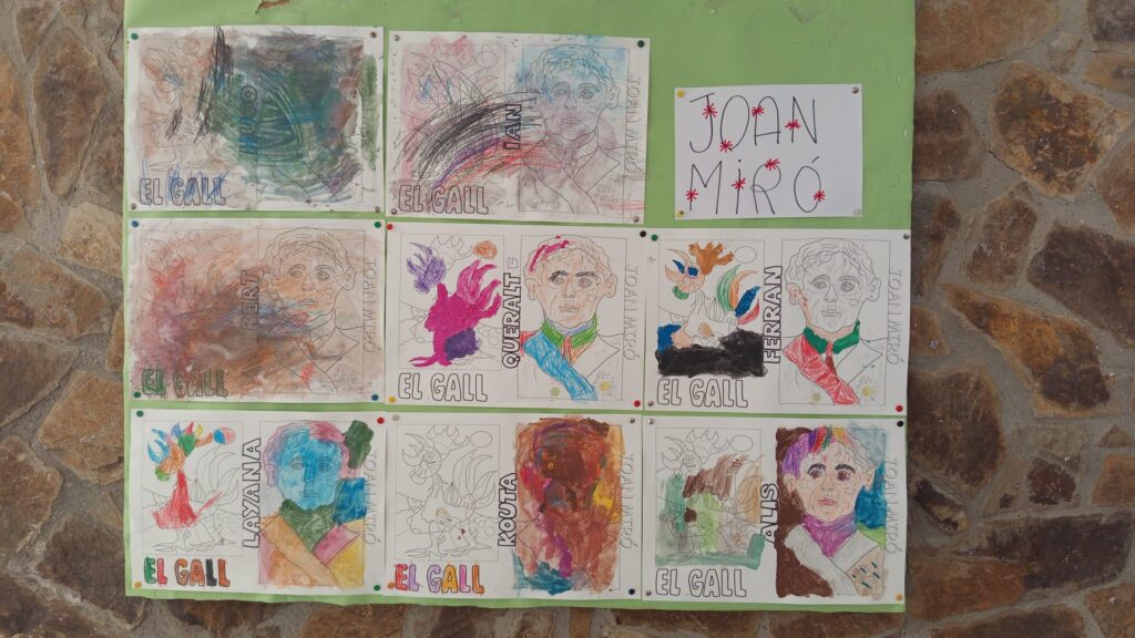 Hem explicat la vida de Joan Miró a partir d’un conte (des de ben petit ja li agradava dibuixar i observar l’entorn). Hem buscat a internet la seva biografia i algunes obres més famoses. Han pintat amb plastidecors i aquarel.les el quadre d'”El gall” i el dibuix del seu retrat de quan era més gran.