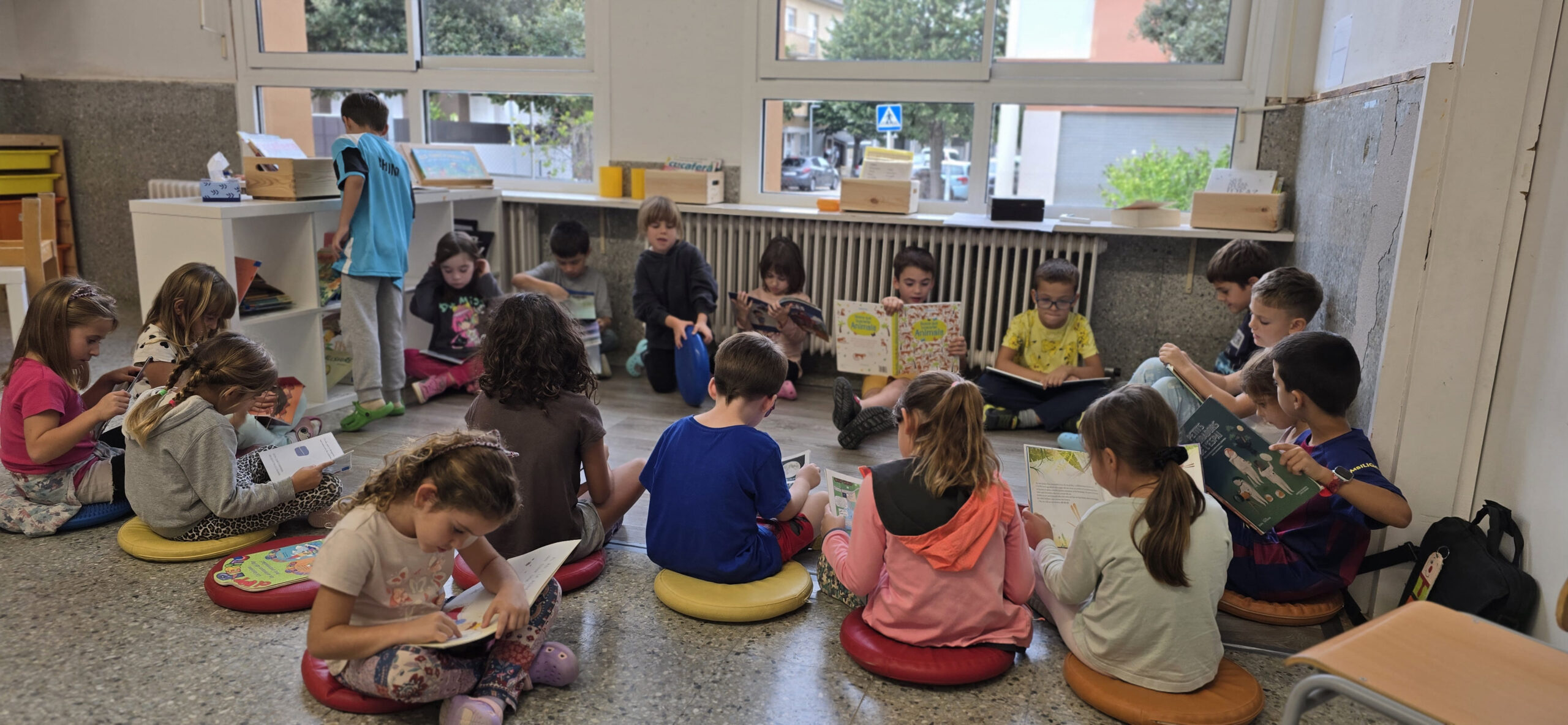 Estem aprenent a llegir a les estones de lectura de tarda. Hi ha moments de lectura compartida, de lectura individual i d’altres acompanyades per la mestra. Com cada any, hem fet compra de llibres per tal de renovar la biblioteca de l’escola i de les aules.