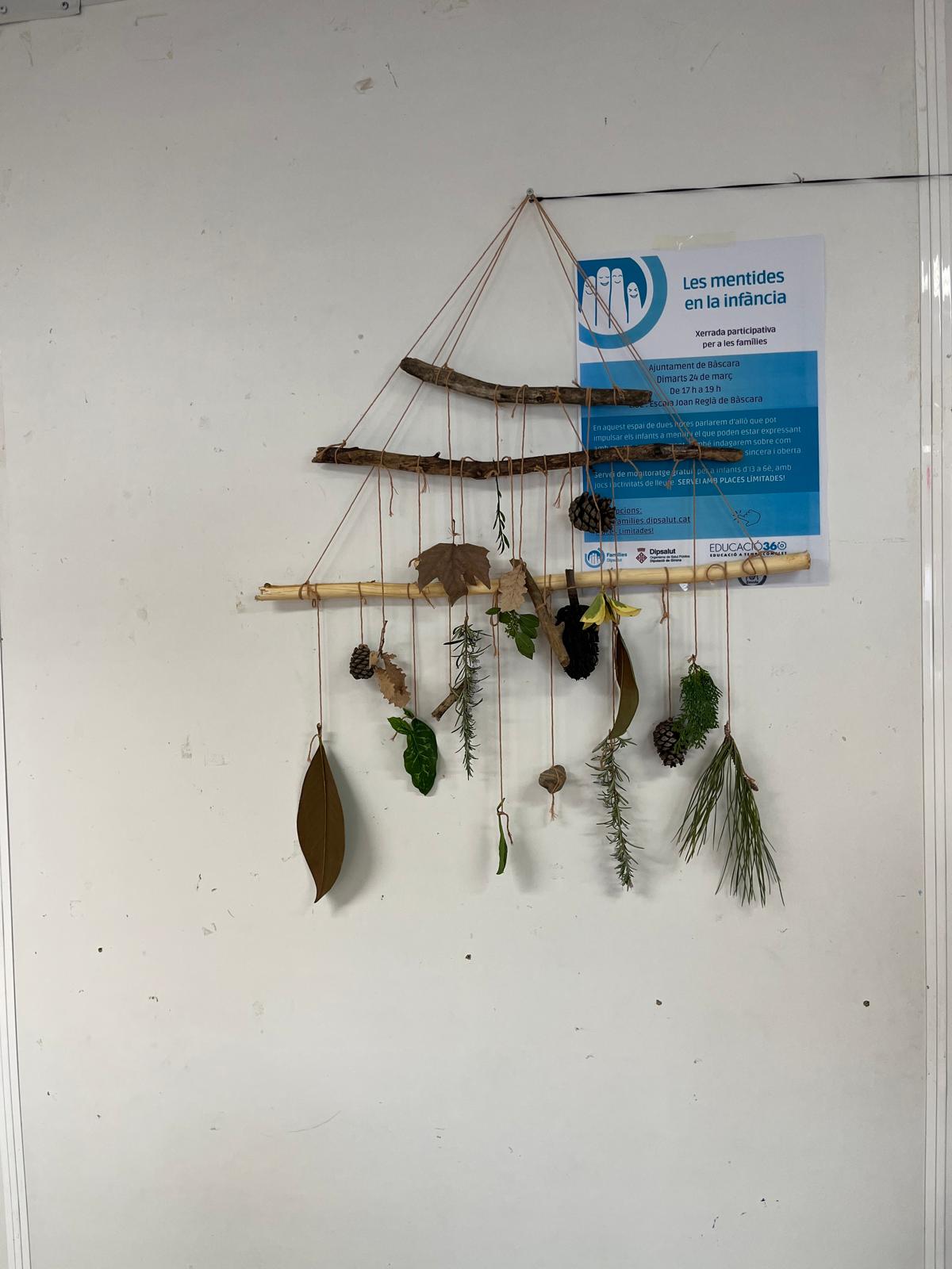 - Hem elaborat un mòbil amb elements de la natura, utilitzant fulles, branquetes i altres materials naturals recollits amb respecte.