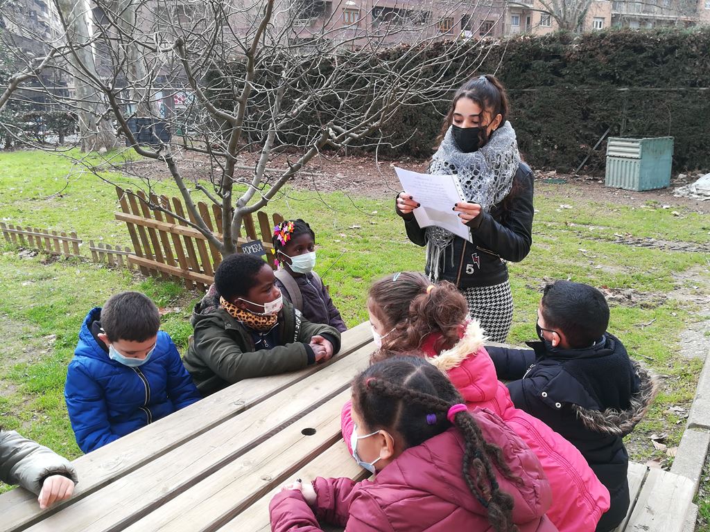 Els nens i nenes de Cicle Inicial A hem baixat a l’hort a observar l’ametller. Hem vist que estava florit. I hem recitat el preciós poema de l’ametller de Joan Maragall.
