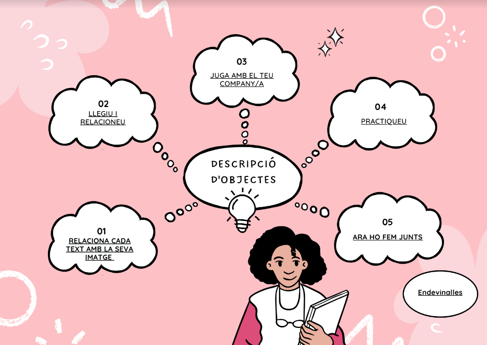 els nens i nenes de 2n hem treballat, a l’ARA ESCRIC, la descripció de persones i objectes. Ara ens endinsarem en el treball de la construcció de frases. Per a practicar, també ho fem a l’aula d’informàtica. Aquí teniu diferents activitats.