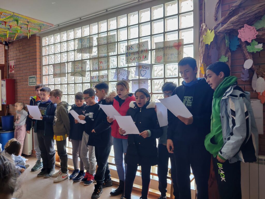 Ahir a l’escola vam celebrar el dia de la pau. Vam llegir uns poemes, vam exposar els cartells, que havíem fet amb grups, sobre el que ens agrada que ens diguin i els més petits van penjar paraules importants relacionades amb la pau.
