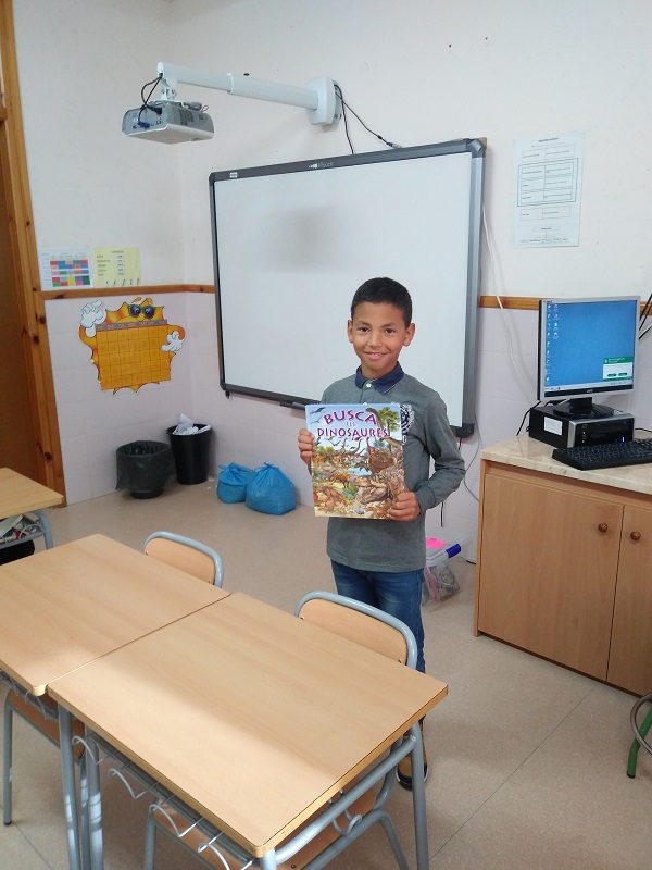 Haitam ens ha parlat d’ un dels llibres que més li agrada. Es titula Busca els dinosaures, de l’Editorial Susaeta