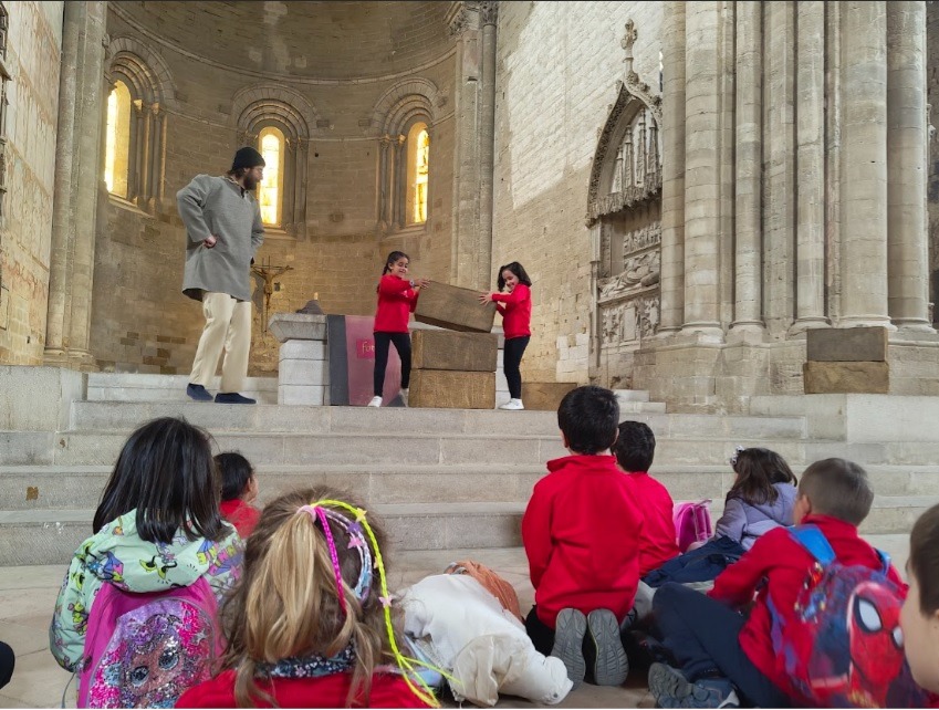 A més, l’alumnat d’Educació Infantil i Cicle Inicial van poder disfrutar de dos tallers desenvolupats a la Seu Vella. El primer, “Temps de reis i reines”, era una visita teatralitzada pel Castell del Rei a través de la figura del rei Jaume I el Conqueridor. Els infants van viatjar a una època de cavallers, reis i castells, tot gaudint de jocs i cançons. Mentre que el segon, “Roc, un picapedre eixerit”, també era una visita teatralitzada a través de la figura d’un picapedrer medieval que ens va explicar com n’és, de màgic, el seu ofici i quants secrets amaga la vella catedral, tot fent un recorregut pels diferents espais que formen la Seu Vella.