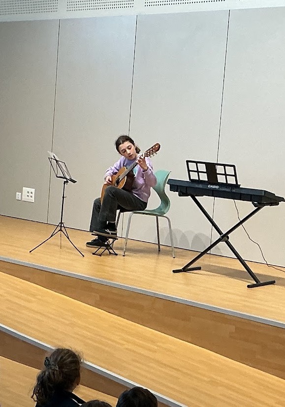 L’alumnat que toca algun instrument, ens ofereix un petit concert a l’hora del pati.