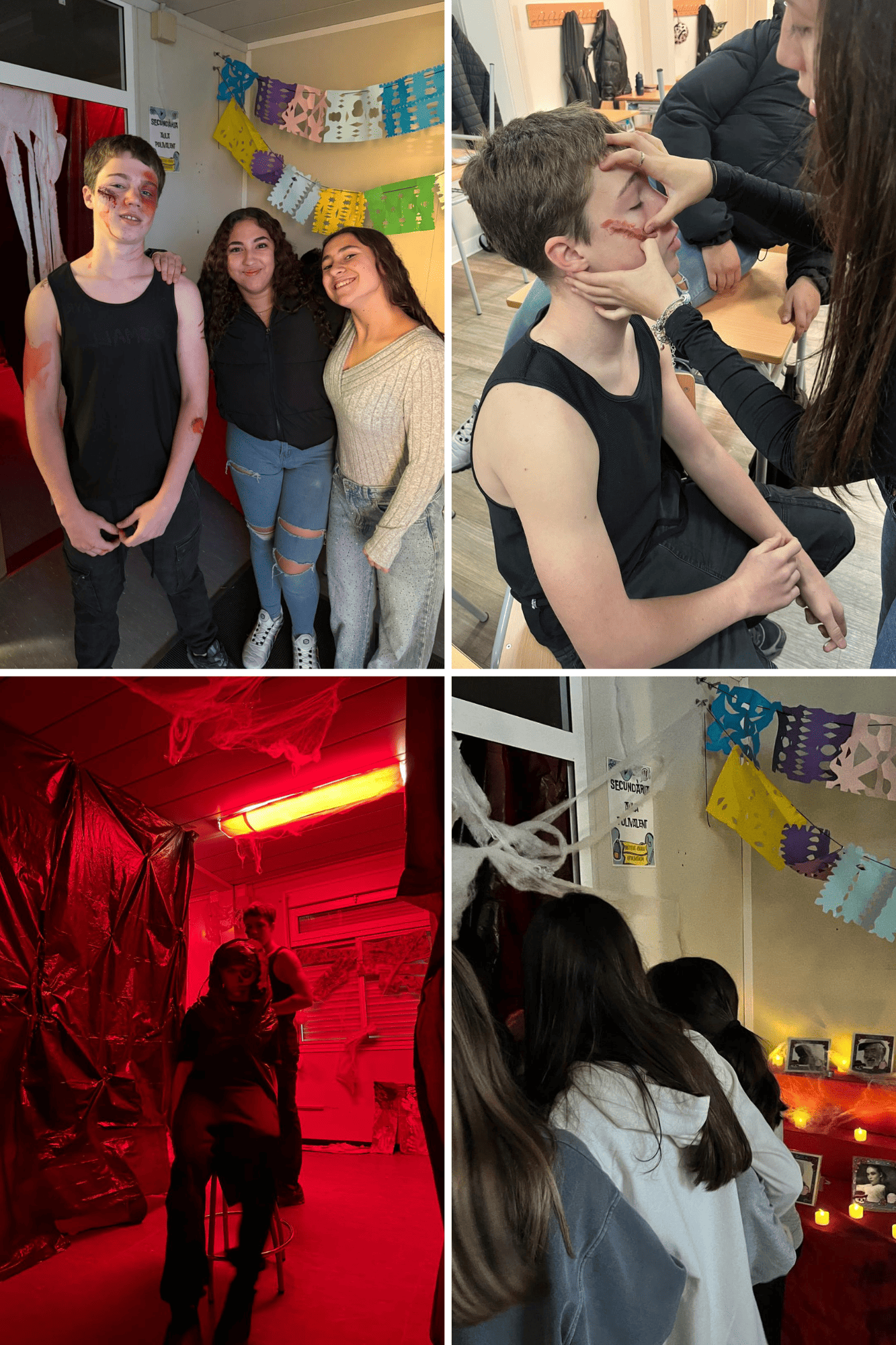 Aquesta iniciativa es va tractar des de les tutories de 4t d’ESO amb la creació de comissions com decoració, maquillatge, efectes especials, seguretat, actors i actrius, entre d’altres.