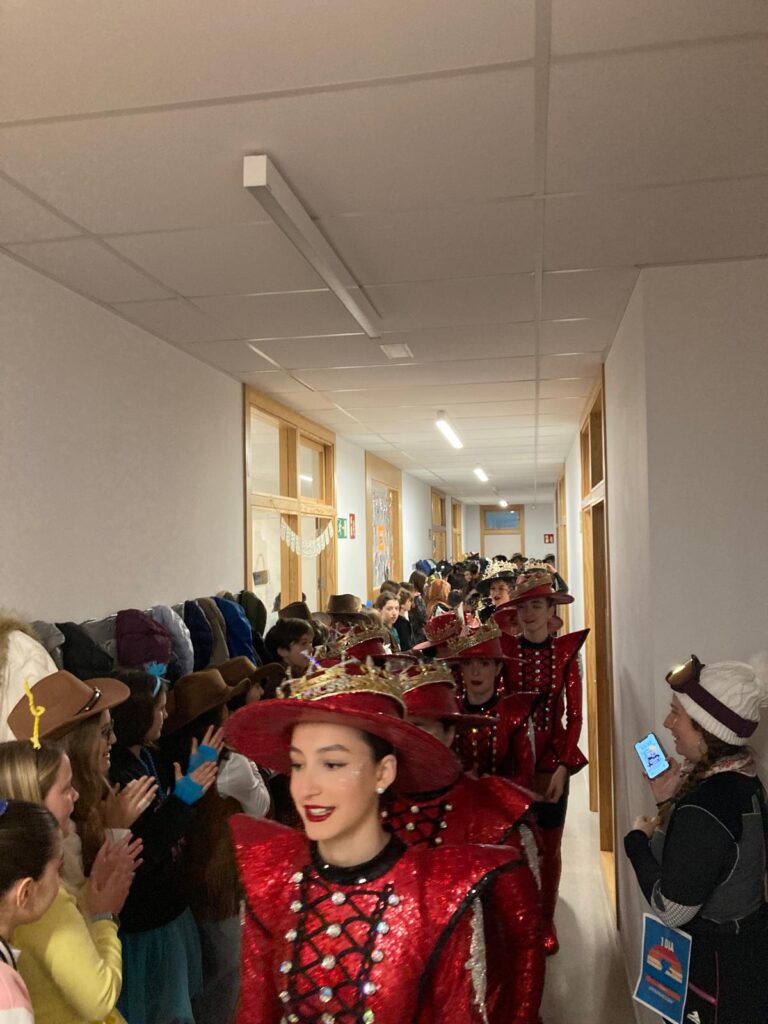 El divendres passat ens va fer una visita la Reina del Carnaval i el seu Concubí. Com que plovia van passar per tots els passadisos de l’escola i el gimàs i els vam rebre amb un gran aplaudiment!
