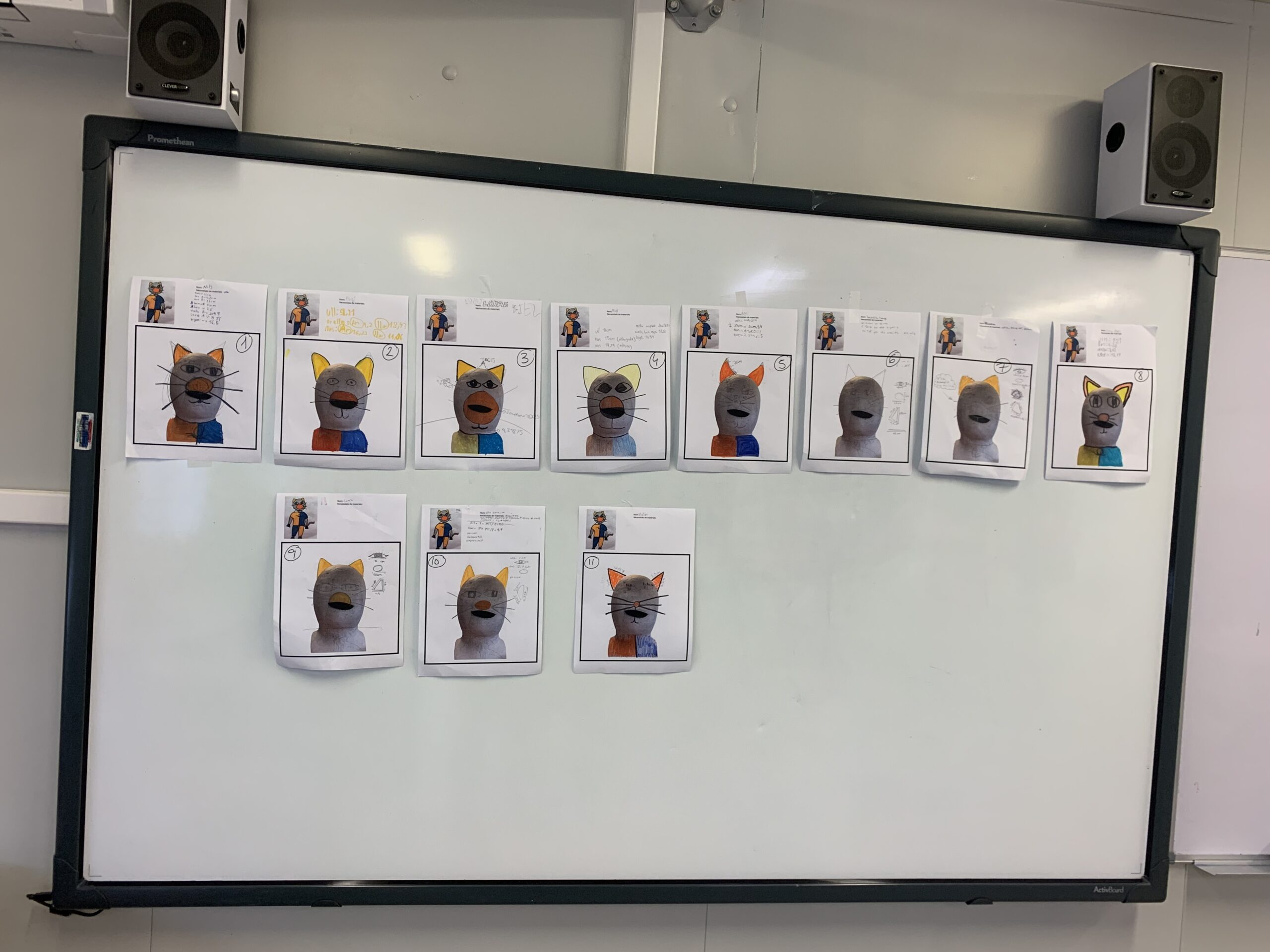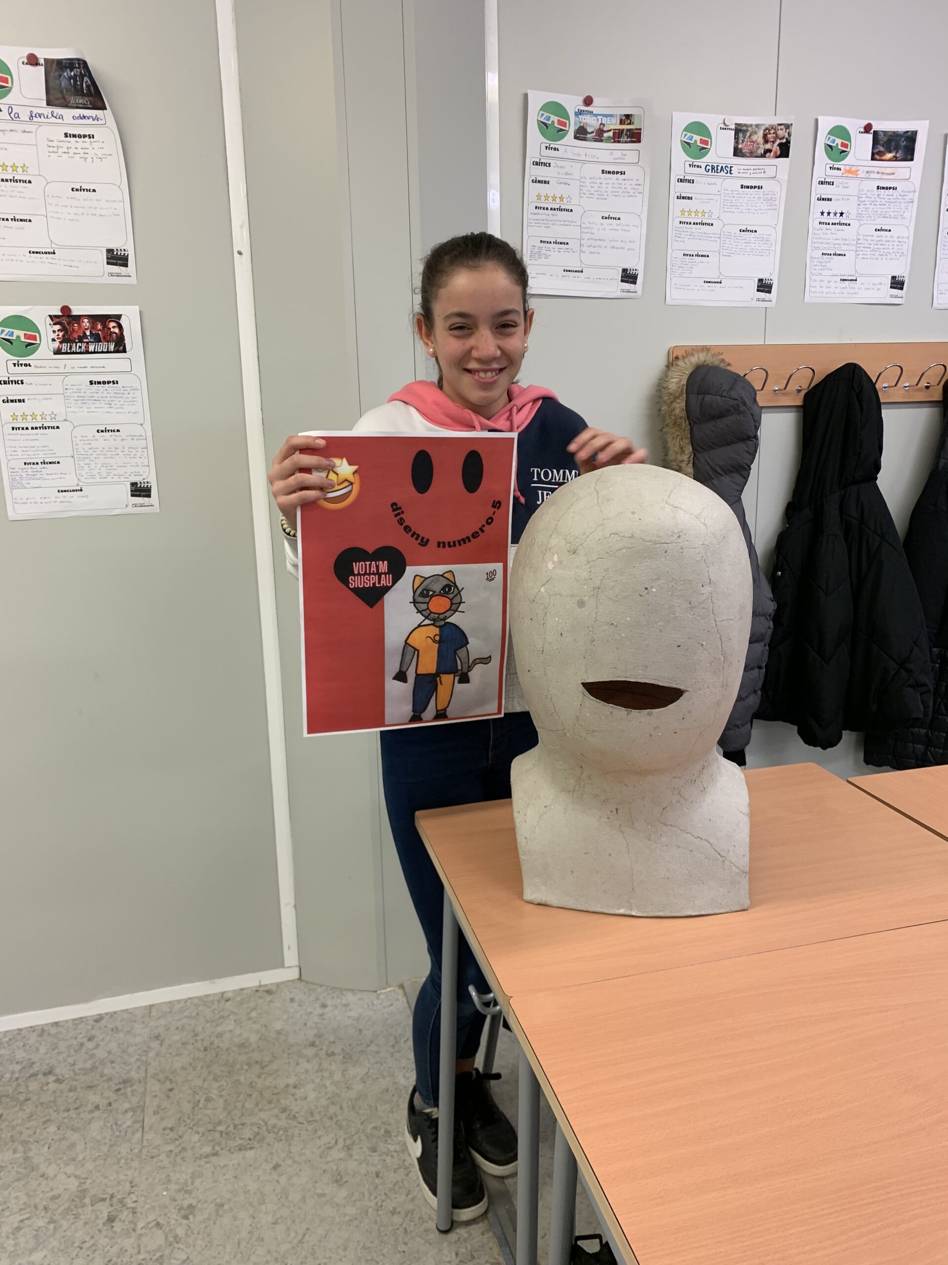 Cada alumne va fer una proposta per fer el cap calculant a escala les diferents parts que el formaven (ulls, boca, nas) i la proposta guanyadora va ser la de l’alumne Nils Kraft (disseny número 1).