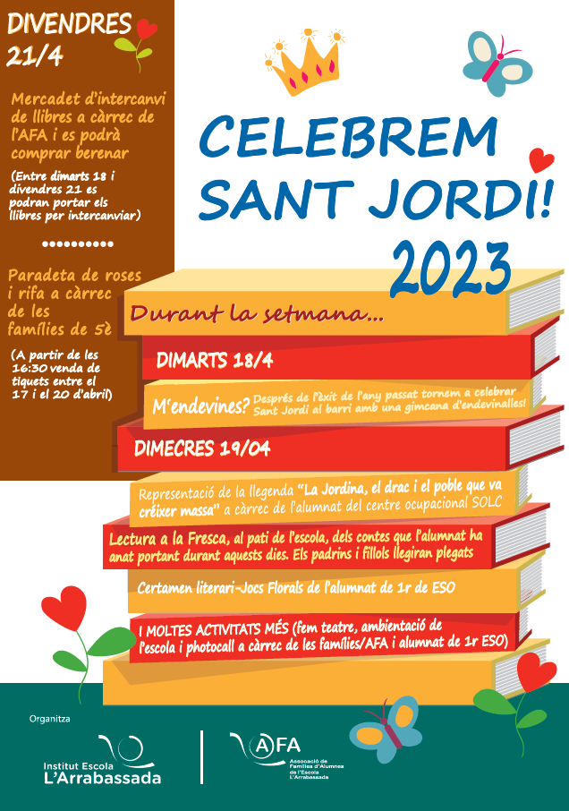 Activitats per Sant Jordi 25/04/2025 Sant Jordi de IE l’Arrabassada Activitats per Sant Jordi Llegeix més »