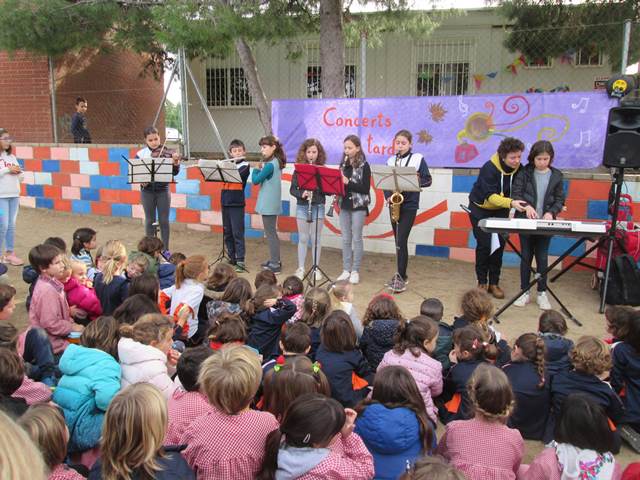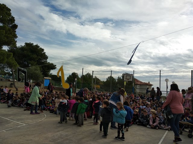 Avui tota l’escola hem celebrat el dia de la música: Sta Cecília. Hem fet un concert a la pista, des de P3 a 6è, cada classe ha cantat la cançó del nom de la classe. Tot un èxit!