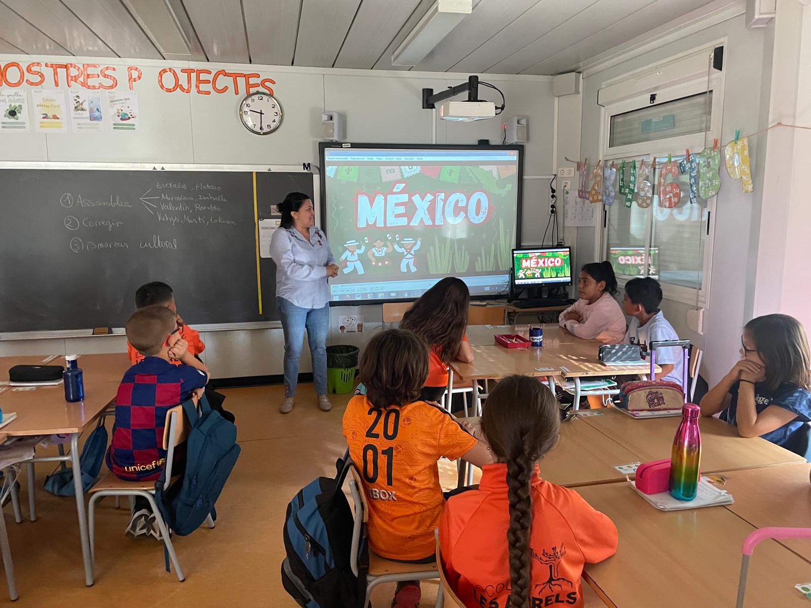 13/06/24Durant les últimes setmanes els nens i nenes de 3r i 4t B han estat fent projectes relacionats amb menjars i curiositats del món. En relació amb aquest fet, aquest matí hem tingut el privilegi de gaudir d’una xerrada relacionada amb Mèxic feta per una noia mexicana que viu a Mollerussa des de fa uns mesos.
