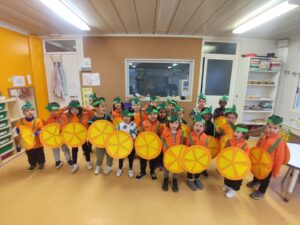 Als tradicionals ambients del matí en què nens i nenes de diferents cursos han treballat junts per elaborar l’esmorzar fruiter del matí hi hem afegit la divertida cercavila de disfresses de la tarda.