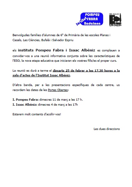 - Les altres famílies si voleu “picnic” pels nens/es, cal dir-ho a l’encarregada del menjador, com sempre de 9:05 a 9:30h del matí, abans del 2 de març.