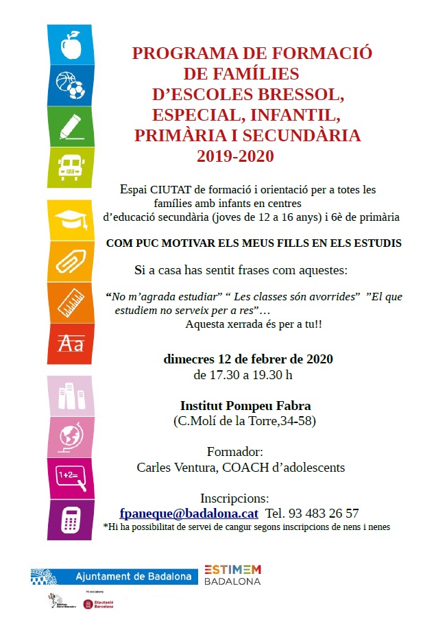 El proper DIVENDRES 14 de febrer de 2020 visitarem l’IES Pompeu Fabra. Sortirem de l’escola a les 09:00h i arribarem a les 12:30h.