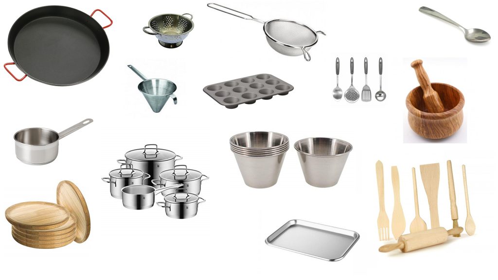 Per tal de complementar aquest espais necessitaríem estris de cuina (olles, cassoles, paelles, cullerots, estris de fusta,…)