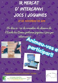 Aquesta és la setmana europea de prevenció de residus. Aprofitant que estem a prop de les festes nadalenques i, tenint en compte el consum que comporten, des de la comissió d’escoles verdes organitzem el 1r mercat d’intercanvi de jocs i joguines amb l’objectiu de fomentar el consum responsable.