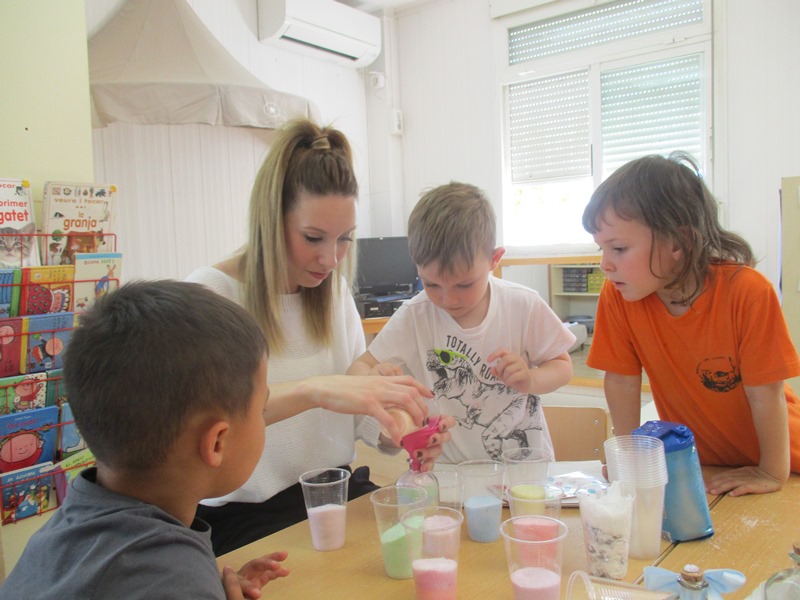 HA VINGUT LA SEVA MARE, LA LAURA, I HEM FET UN POT AMB SALS DE COLORS.