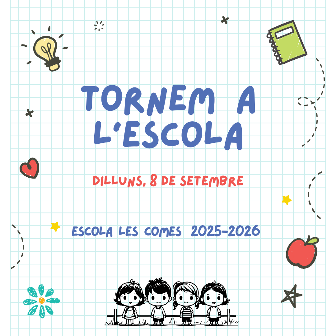 Tot l’equip docent de l’Escola Les Comes esperem que, com nosaltres, els i les vostres fills/es arribin amb ganes de retrobar companys/es, mestres, espais i noves experiències.