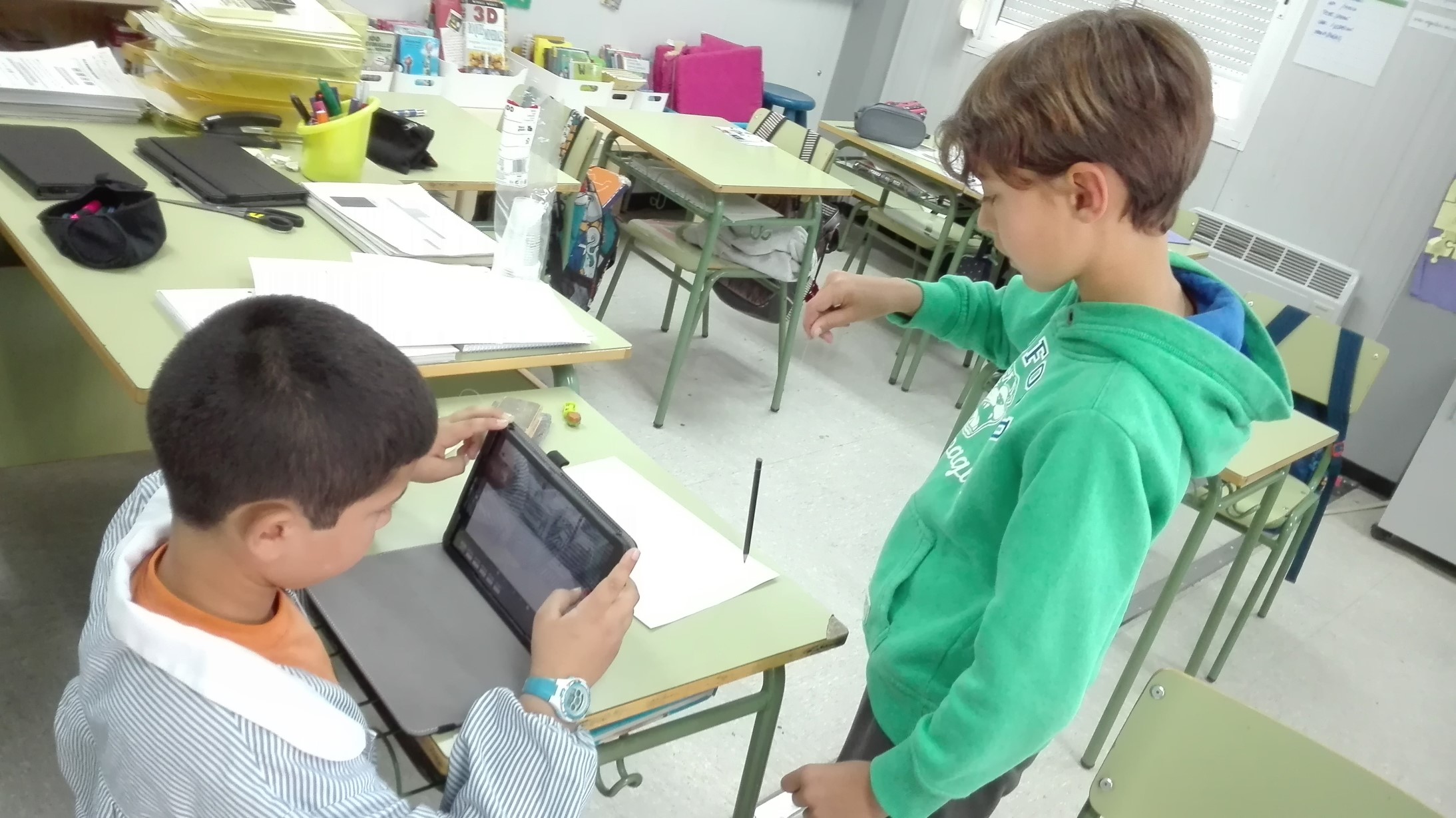 Així doncs, aprofitant que l’escola disposa de tauletes digitals, han començat la gravació tot fent proves a través de la tècnica de l’stop-motion.