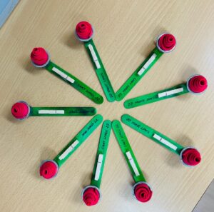 Per celebrar el Sant Jordi aquest any els i les alumnes han fet diverses manualitats. A infantil unes roses i uns preciosos punts de llibre molt originals i els i les alumnes de primària unes roses molt atractives.