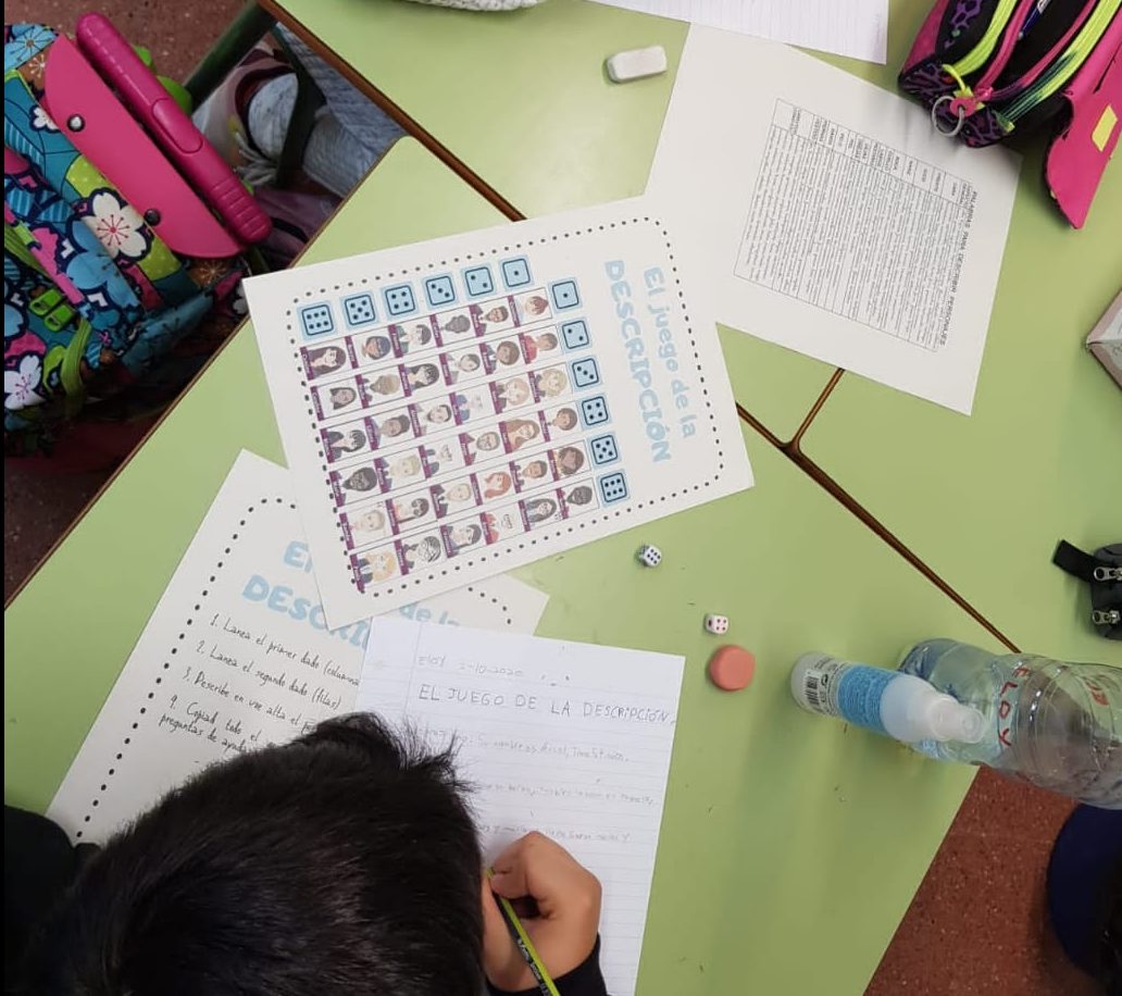 TREBALLEM LA DESCRIPCIÓ admin06/10/20 Els alumnes de 5è treballen la descripció de personatges mitjançant un joc. Primer oral i després escrit. Amb l’ajuda dels daus, hauran d’anar creant diferents personatges: Com es diu? Com és la seva cara? Com té el cabell? Com són els seus ulls? …