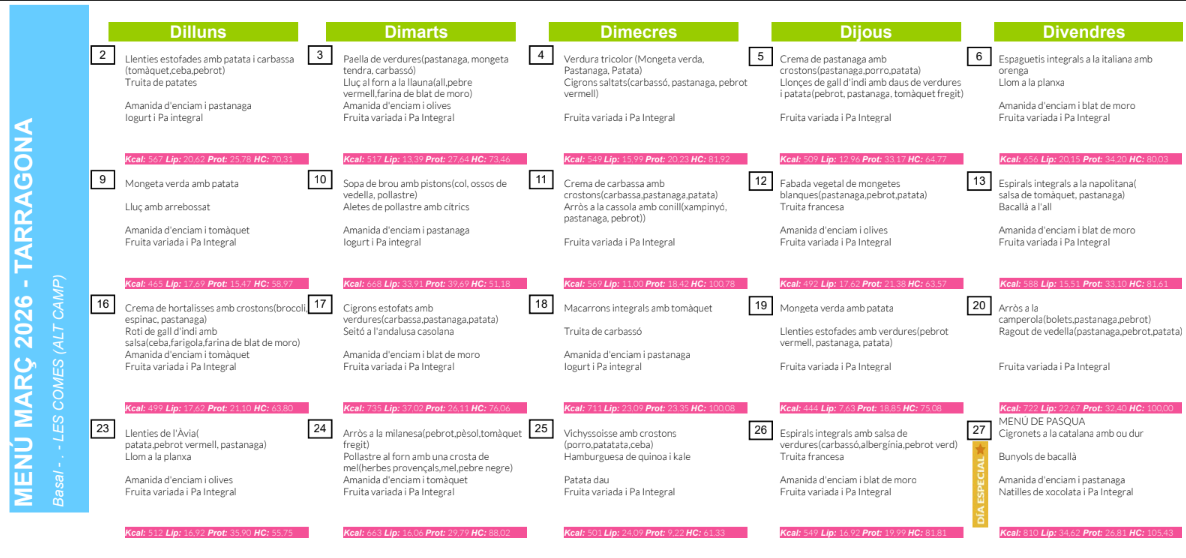 MENÚ DEL MES DE MARÇ