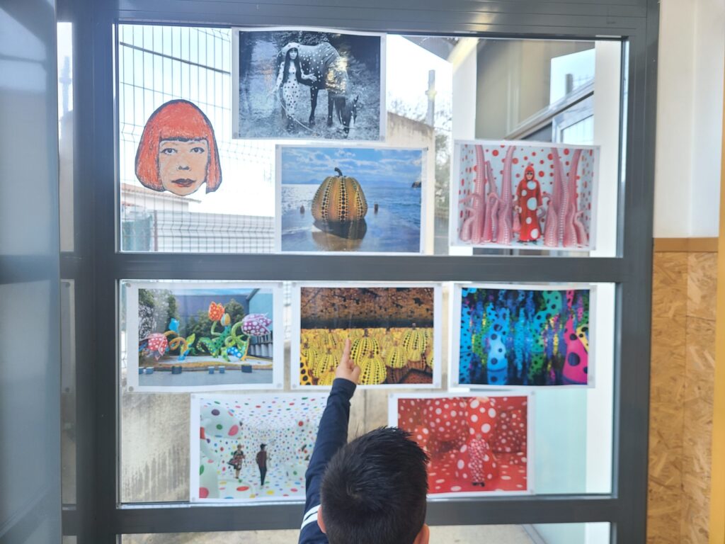Els alumnes de I5 estan molt motivats descobrint l’artista japonesa Yayoi Kusama precursora de l’art pop, el minimalisme i l’art feminista. Es va dedicar a elaborar obres d’art basades en la pintura, l’escultura, l’art performance i les instal·lacions creades a partir de la repetició i els patrons, obres plenes de punts i rodones de colors infinits.