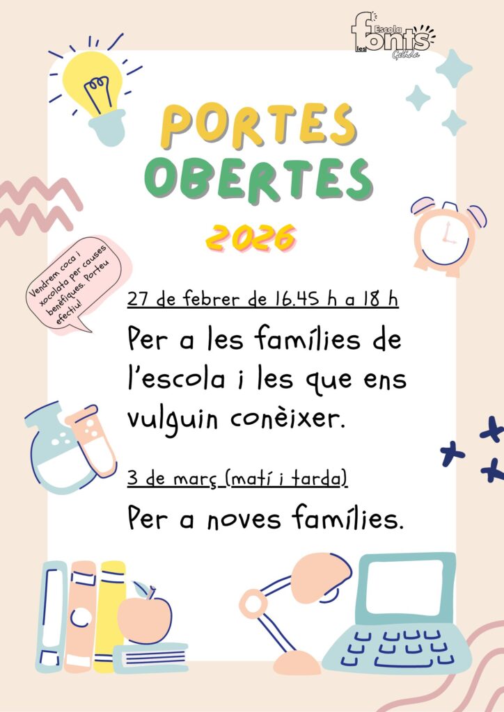 | Portes obertes per a noves famílies ->Inscripció<- | Dimarts 3 de març (matí i tarda) |