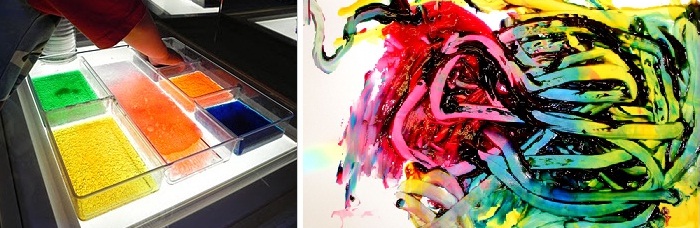 - Experimentem barreges de colors amb colorants diluïts amb aigua i pintures:
