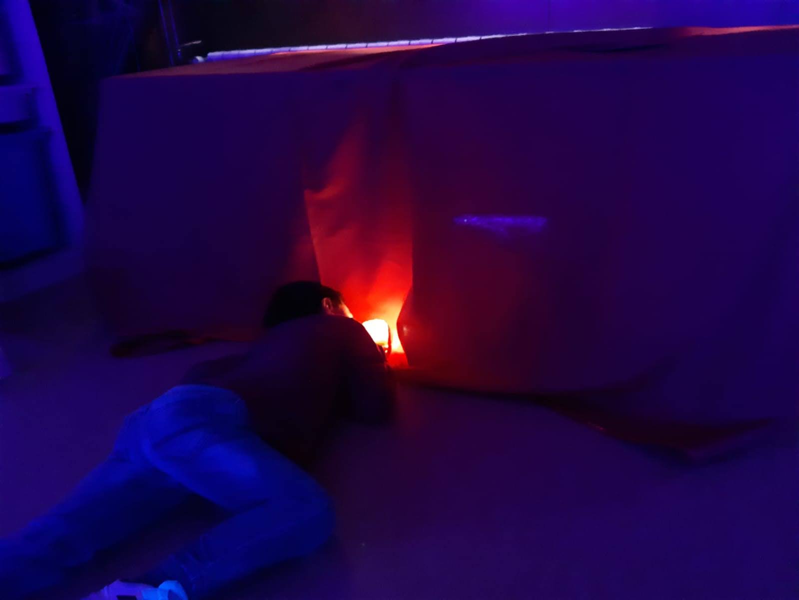 En aquesta aula els nostres infants hi trobaran diferents materials on la foscor serà la protagonista, sempre amb uns punts de llum com per exemple un retroprojector, tres taules de llum, lots…. o un racó on hi haurà instal·lada una cova on els infants podran jugar amb objectes i materials fosforescents, on podran crear, comparar…tot un món màgic que ajudarà a no tenir por a la foscor sinó tot al contrari, a gaudir d’ella.