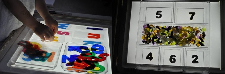 - Les activitats d’escriptura amb lletres mòbils i les activitats matemàtiques amb materials translúcids de colors fan que cadascuna es converteixi en un moment màgic.