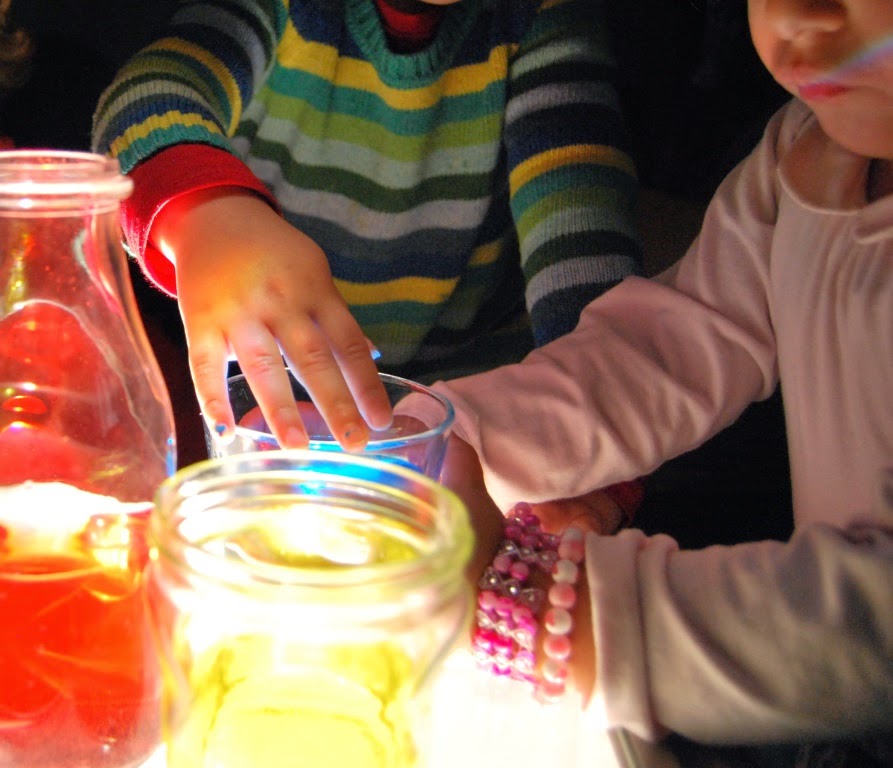 L’ambient de llum ofereix una oportunitat de jugar a través de la llum i el color, convertint l’activitat científica en un centre d’experimentació i expressió artística.