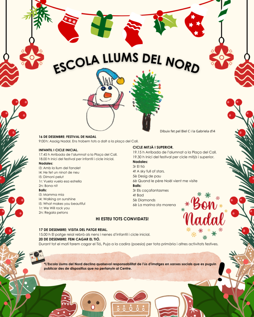 *L’Escola Llums del Nord declina qualsevol responsabilitat de l’ús de les imatges des de dispositius que no pertanyin al centre educatiu.