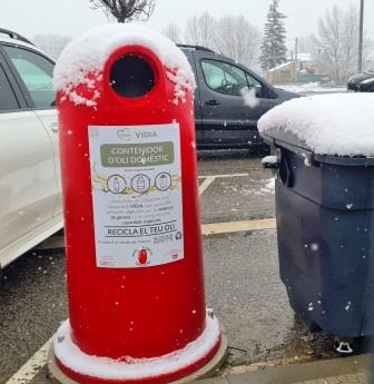 Fundació VIDIA treballa perquè tothom tingui un contenidor de reciclatge d’oli a prop de casa i, gràcies a la seva col·laboració, ara en tenim un just als afores de l’escola! És un contenidor vermell on totes les famílies, veïns i coneguts poden dipositar l’oli usat. Només cal guardar-lo en ampolles de plàstic ben netes, com les d’aigua, refrescos o fins i tot pots de xampú o suavitzant. No cal filtrar-lo, simplement cal assegurar-se que el recipient estigui ben tancat abans de deixar-lo al contenidor.