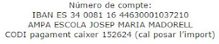Els comprovants de la paga i senyal s’entregaran al quartet de l’AMPA