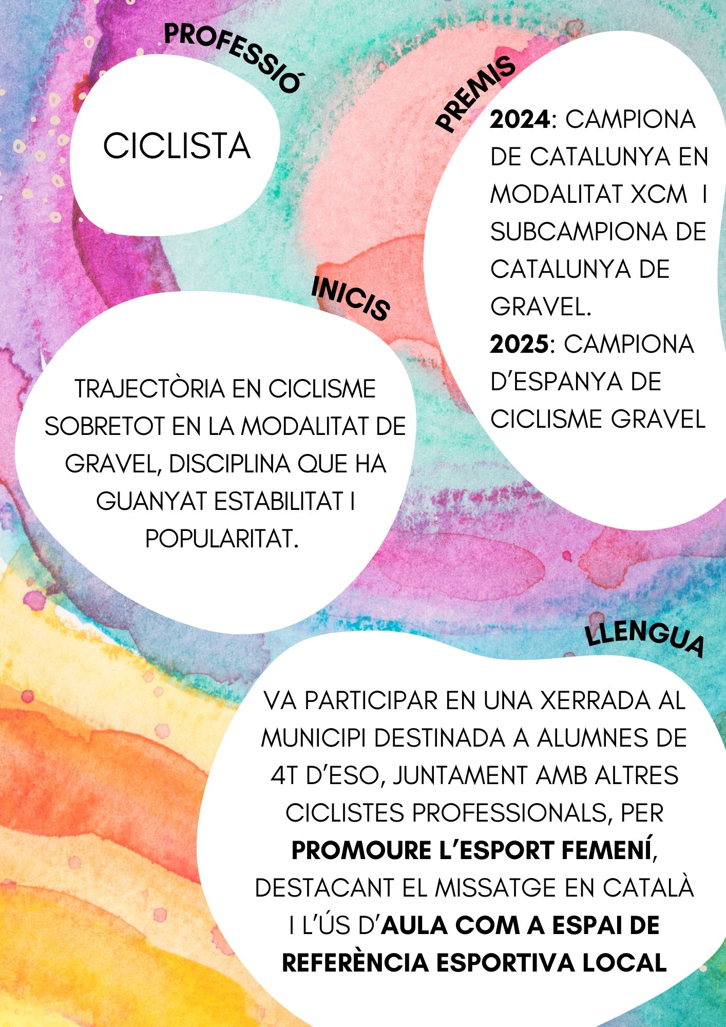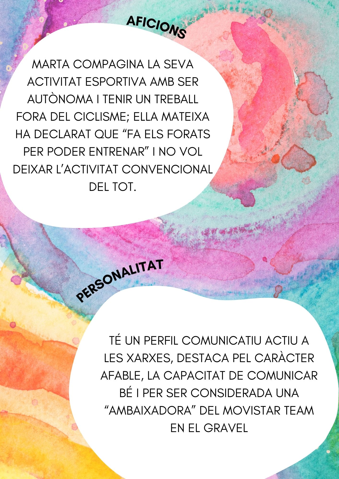 Aquest mes a l’escola posem el focus en la Marta Torà, esportista de Molins de Rei i referent del ciclisme femení català. Fer-la protagonista del mes no és només una manera de reconèixer la seva trajectòria esportiva, sinó també de posar en valor els models propers que inspiren el nostre alumnat a creure en l’esforç, la constància i la superació personal.