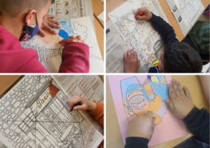 Hem estat mirant obres d’en Pablo Picasso, que va ser un gran artista cubista, per entendre aquests tipus de dibuixos i després ho hem provat de fer nosaltres. Hem agafat uns dibuixos molt bonics on hem traçat diferents línies rectes per modificar la realitat, i crear formes geomètriques de colors diferents. Els elements de les figures es descomponen en quadrats, rectangles, triangles, etc , utilitzant multiplicitat de vistes, creant una nova forma de l’objecte real.