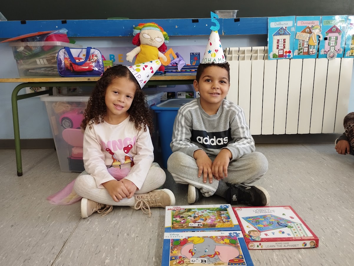Avui hem celebrat un doble aniversari el del Mohamed i la Miranda, hem ballat i cantat la cançó de l’aniversari i hem celebrat que ja tenen 5 anys! Moltes gràcies pels regals de classe que heu portat. Moltes Felicitats!!!