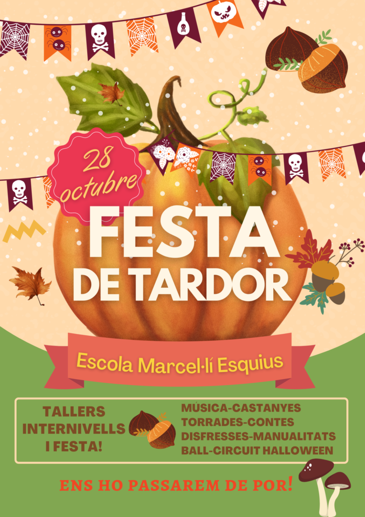 Nens d’infantil barrejats i de tots els cicles de primària passant de taller en taller disfressats de castanyeres o castanyers o de qualsevol personatge terrorífic per fer manualitats, paperines originals per les castanyes, balls i danses, tatoos, jocs a la pista… i com no, el taller estrella: el circuit del terror!