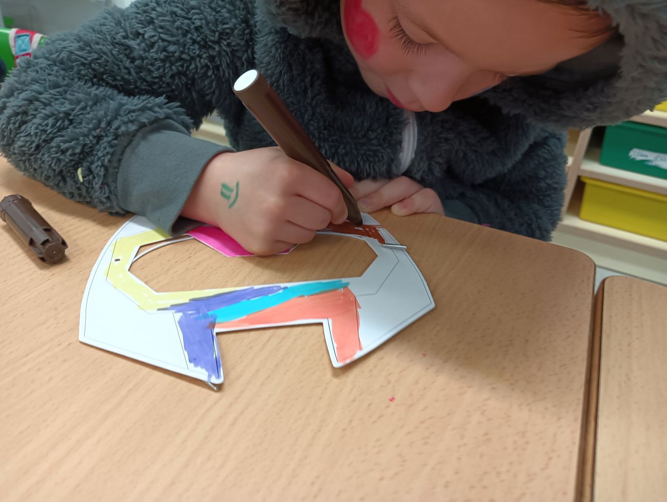Pel matí venim amb el pijama posat, però no per dormir sinó perquè ens ho va dir el Carnestoltes, aaai que poca-solta! El matí ha estat dedicat als tallers de carnaval on els més petits i petites de la casa hem estat experimentant i jugant amb confetti, ens hem pintat les ungles i la cara, hem ballat cançons divertides, ens hem disfressat, hem pintat mascaretes i els nens i nenes de 6è ens han explicat un conte. No hem parat!!!