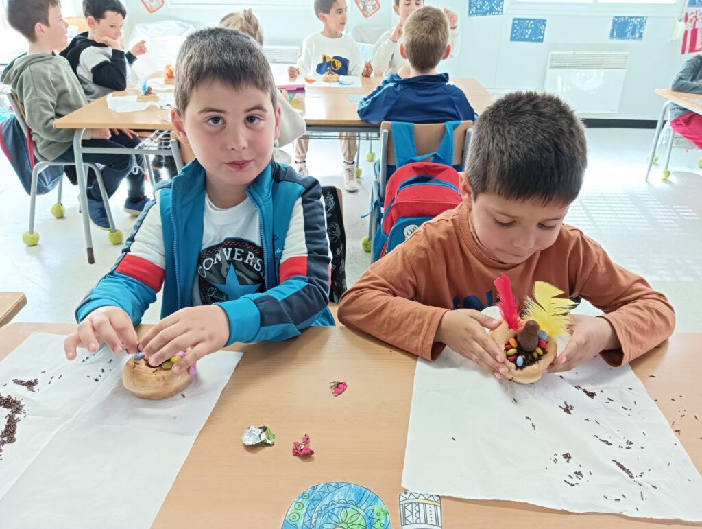 Avui a l’escola els nens i nenes d’Infantil hem gaudit d’un dia molt dolç. Després de treure-li la última cama a la Vella Quaresma hem anat a buscar les figures de xocolata amagades pel pati per així poder decorar la nostra petita mona. N’hem trobat moltes!!