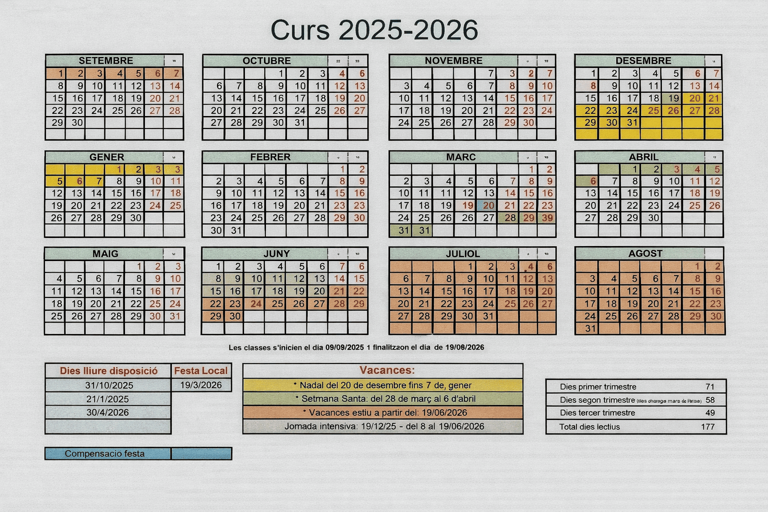 Calendari del curs