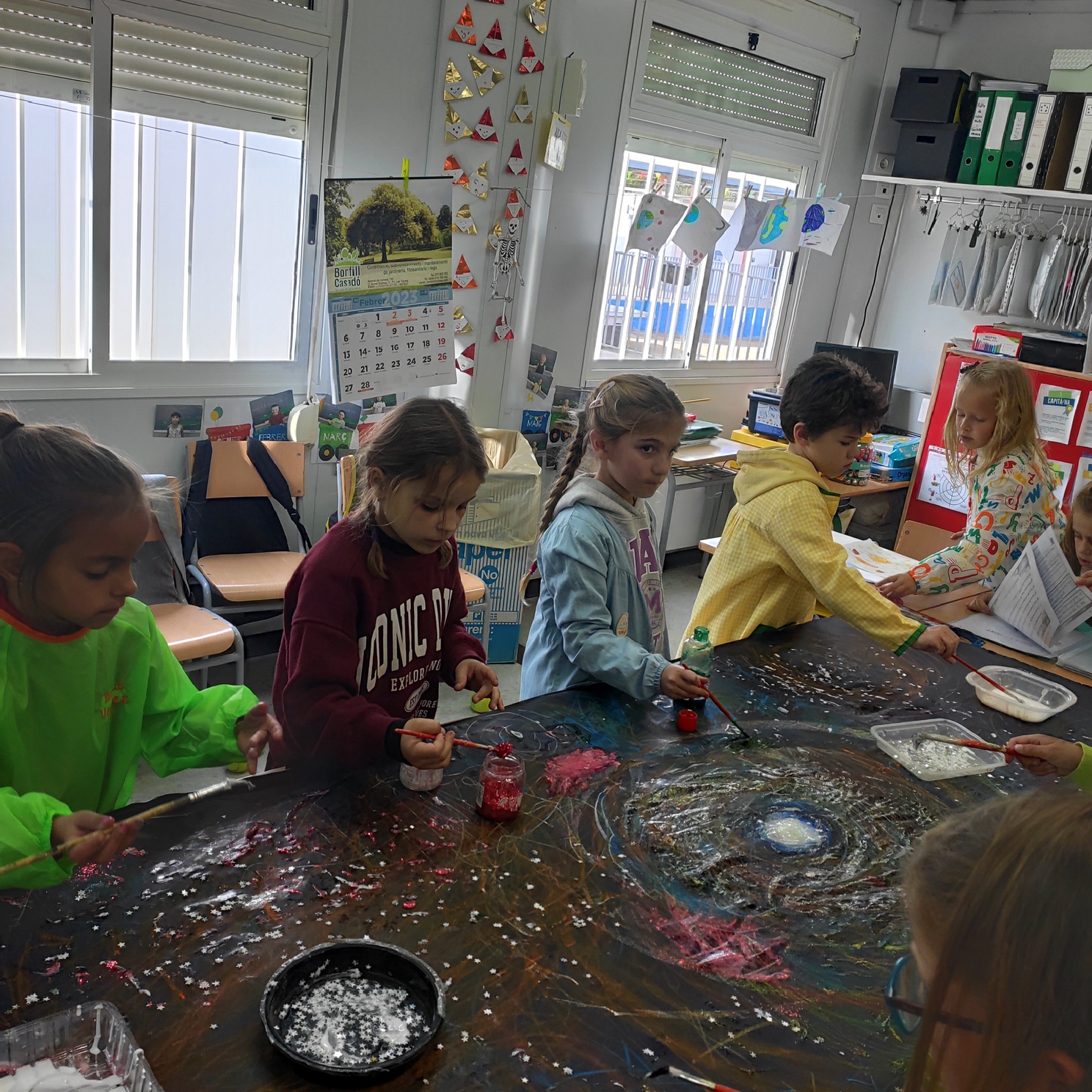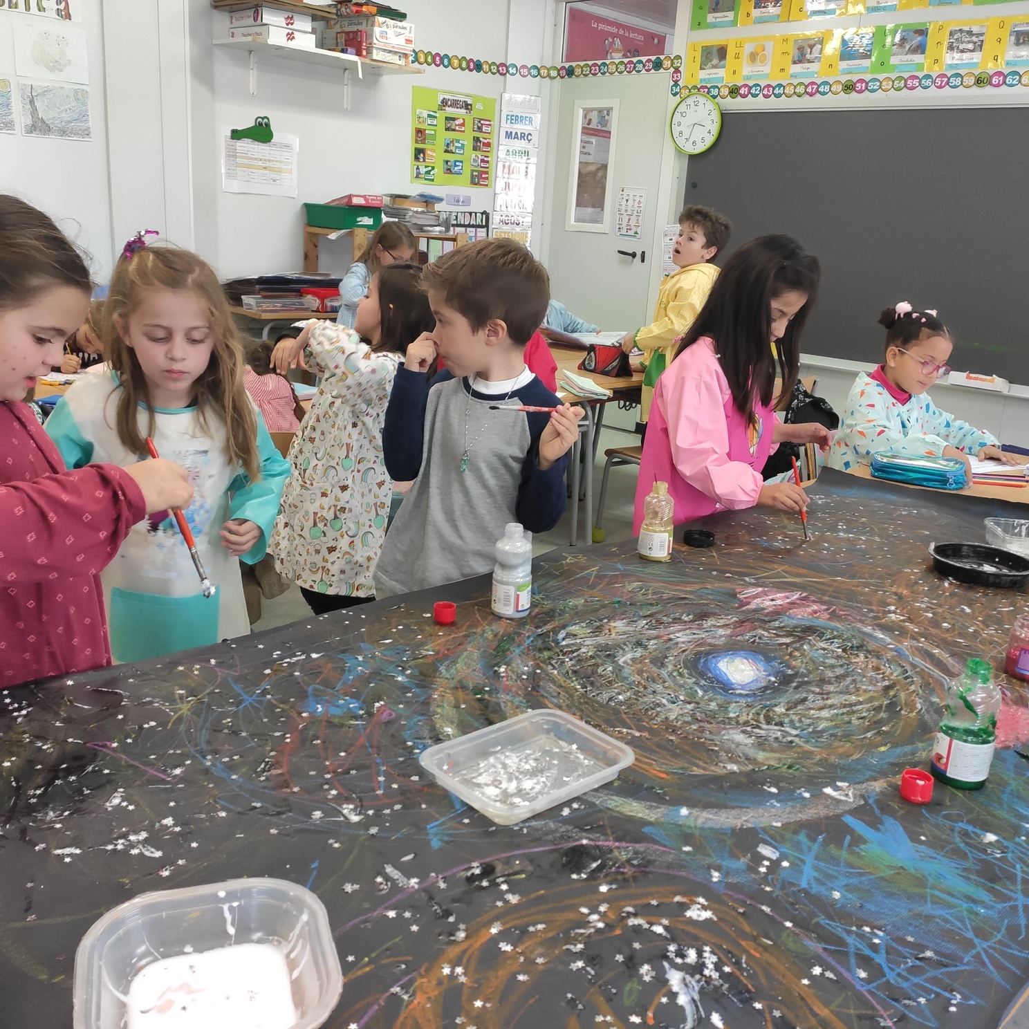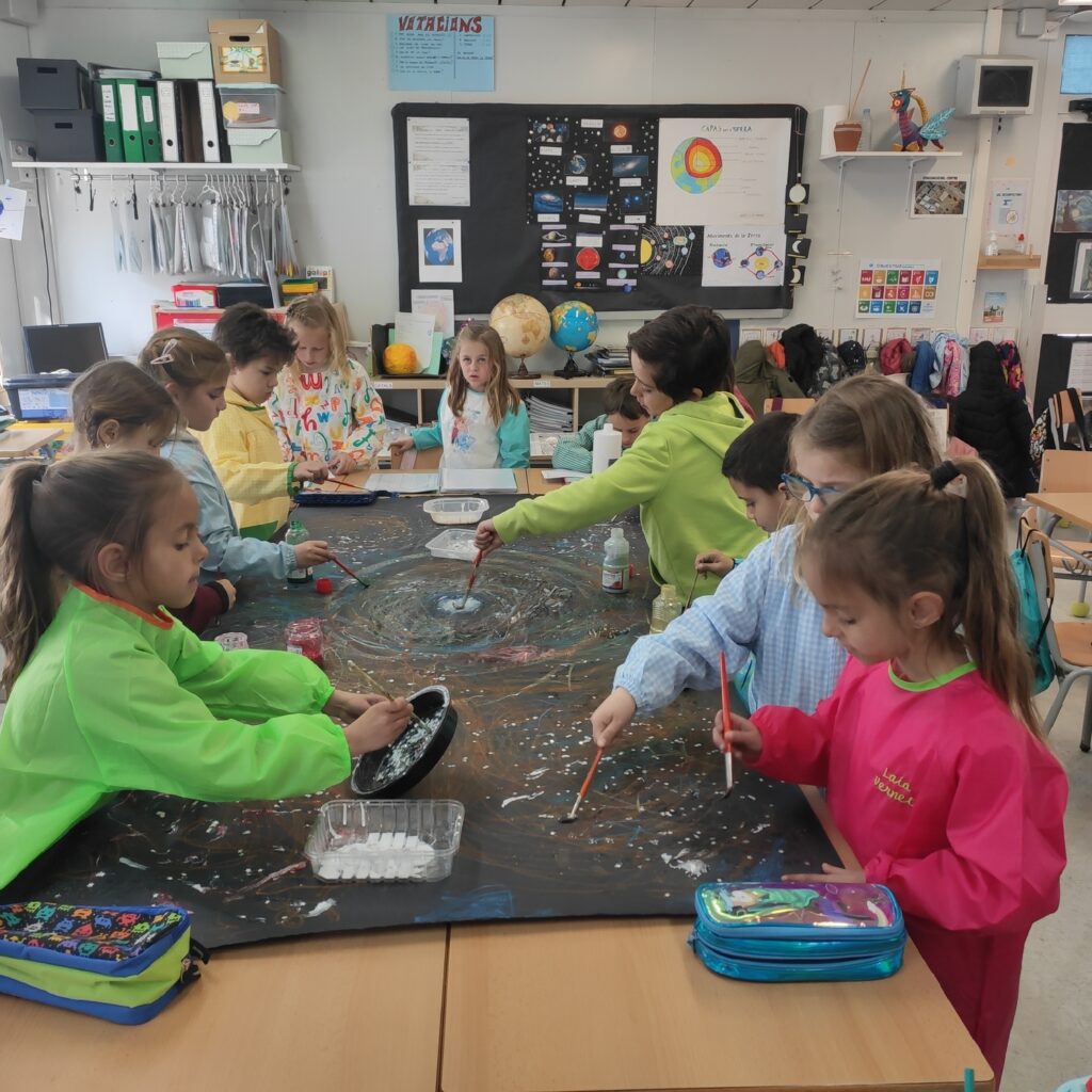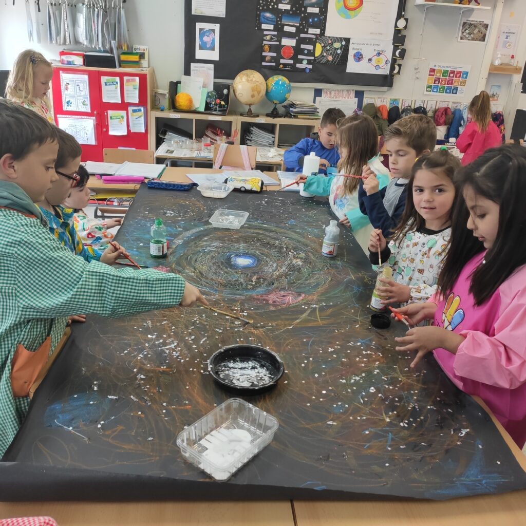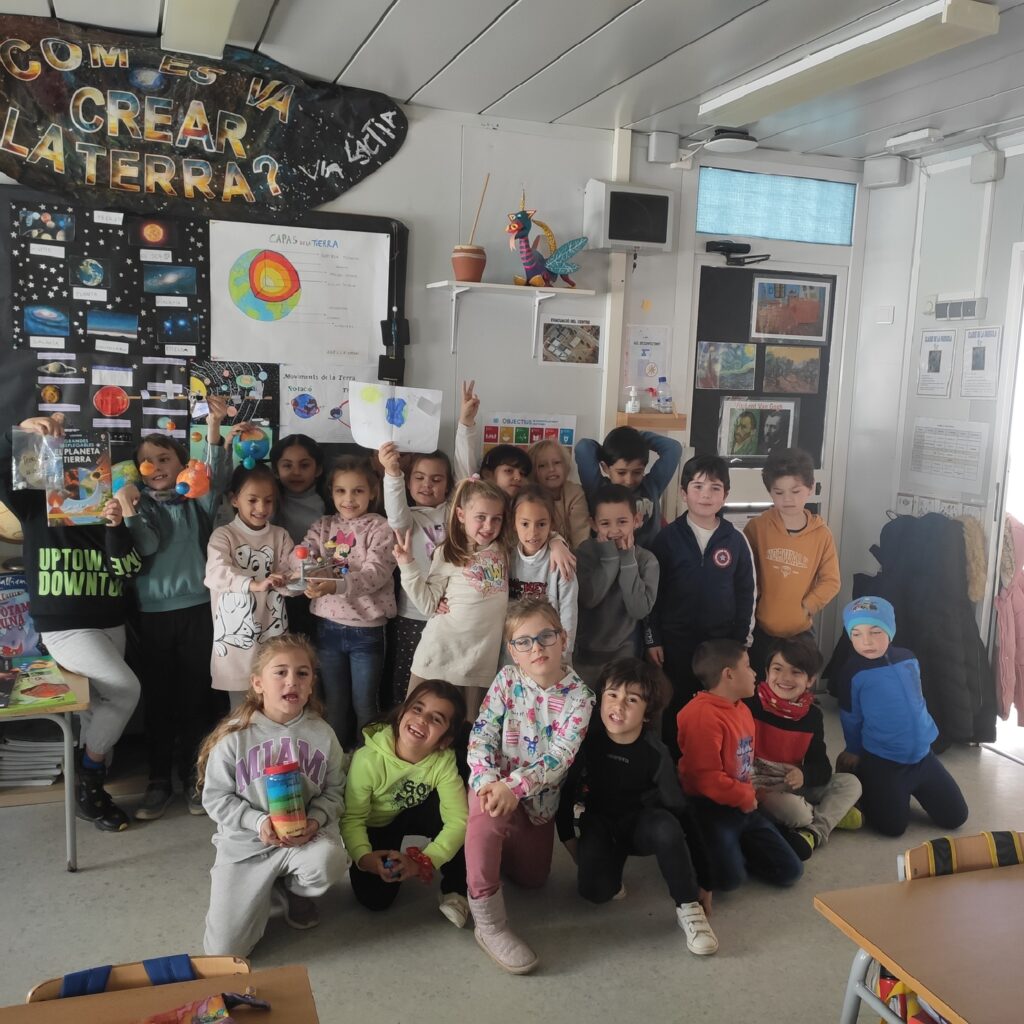 Les nenes i els nens de 1r han aprés molts conceptes sobre l’Univers, com per exemple, la creació de la Via Làctia, el Sistema Solar, els planetes i astres que hi orbiten. Després han treballat les quatre parts que constitueixen la Terra així com, la composició de les parts més importants de la geosfera.
